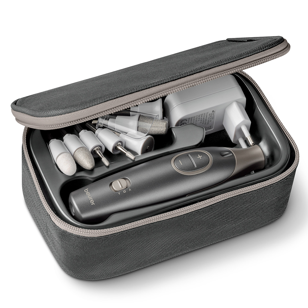 Beurer MP 200 StudioNails Pro maniküüri- ja pediküüriseadmes on kombineeritud kolm võimsat funktsiooni: küünelõikur, UV/LED-lamp ja küünetolmu eemaldamine. Sobib nii geel- ja akrüülküünte kui ka UV-lakkide hoolduseks, võimaldades saavutada salongitasemel tulemused otse kodust. • Professionaalne maniküür ja pediküür • Sobib kunstküünte modelleerimiseks • Otsikud sobivad diabeetikutele • Võimas seade töötab kuni 26 000 p/min ja võimaldab tõhusat ja kiiret küünehooldust