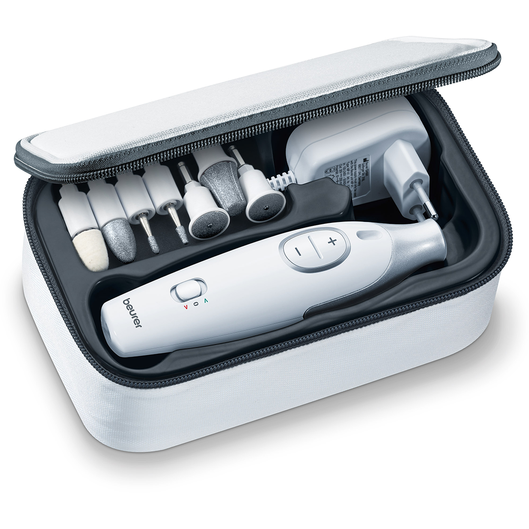 Professionaalne maniküüri-pediküürikomplekt sobib nii algajatele kui ka professionaalidele täiuslikult hooldatud küünte ning pehmete käte ja jalgade jaoks. Ergonoomiline disain hoiab ära libisemise protseduuri ajal. • Maagiline LED-ekraan – ilmub ainult töötamise ajal • Pidevalt reguleeritav, päripäeva/vastupäeva pöörlev • Sisaldab 7 kvaliteetset lisaseadet • Ergonoomiline disain hoiab ära libisemise protseduuri ajal • LED-valgustus • Diabeetikutele sobivad tarvikud • Kaasas kaitsekork küünetolmu eest kaitsmiseks • Võrgutoide • Individuaalselt reguleeritav intensiivsus vahemikus 0 kuni 15 • Kaasas hoiustamiskott