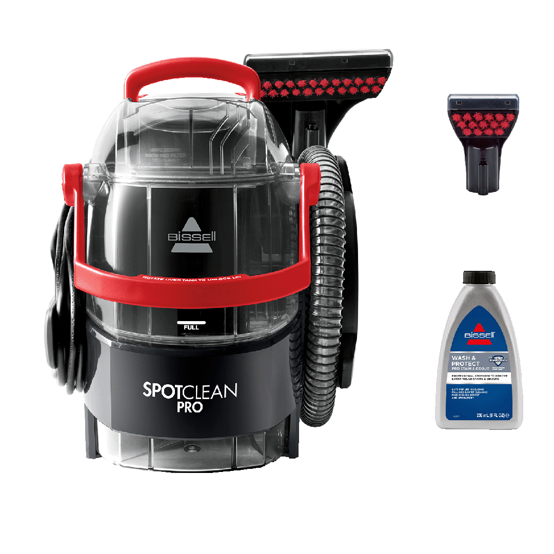 BISSELL SpotClean Pro eemaldab plekid ja mustuse kiiresti kõikjal. Laiem hari ja tugevam, pikem voolik koos suurema võimsusega eristavad seda seadet teistest. Tänu oma kergele ja kaasaskantavale disainile saab sellega plekke eemaldada treppidelt, polstrilt, vaipkatetelt ja väikestelt vaipadelt. SpotClean Pro-l on ülipikk toitejuhe ja erinevad harjaotsikud ootamatute plekkide, lõhnade ja kuivanud mustuse eemaldamiseks, sõltumata nende asukohast. • 1,5 m integreeritud voolik võimaldab puhastada raskesti ligipääsetavaid kohti. • Suured paagid lihtsustavad täitmist ja tühjendamist. • 750 W võimsus tagab tõhusa plekkide ja vedelike eemaldamise. • Kompaktne disain hõlpsaks hoiustamiseks.
