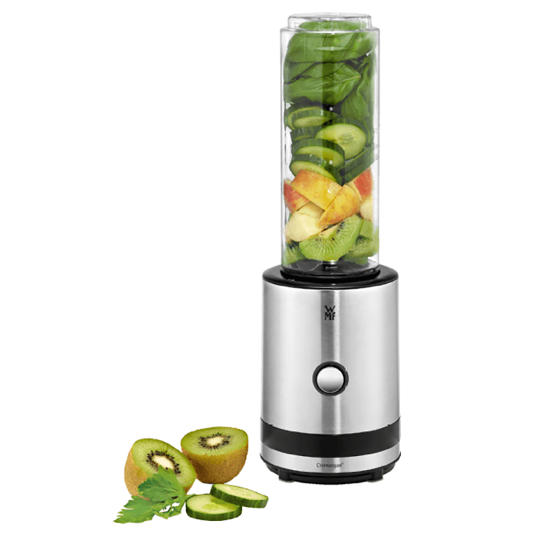 Tervislikud, värsked ja maitsvad smuutid valmivad vaid nupule vajutusega. Nelja teraga roostevabast terasest lõikur purustab kõike, isegi jääd. 2 segamis-/joomisanumat on tehtud Tritan plastikust (BPA-vaba). Komplekti kuulub ka praktiline lekkimiskindel kaas segamis-/joomisanumale. Seade lülitub automaatselt välja, kui segamisanum pole õigesti paigaldatud. Korpus on valmistatud vastupidavast WMF poolt väljatöötatud roostevabast Cromargan® terasest, mis on kergesti puhastatav ja säilitab oma erilise läike masina kasutusaja lõpuni.