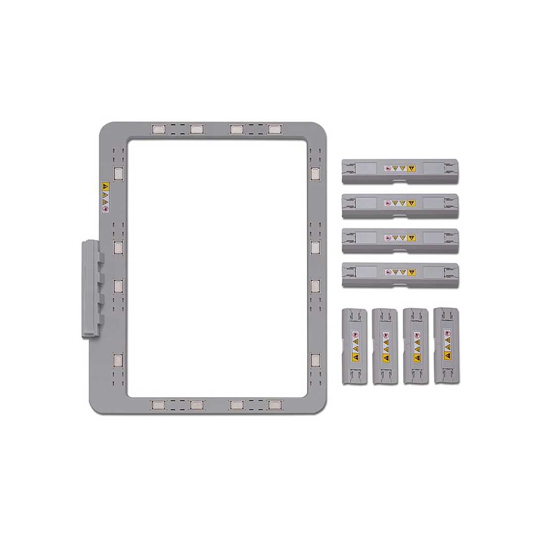 • Kinnita kangas tikkimisraami kiirelt ja kindlalt. • Aseta mis tahes kuni 2 mm paksune kangas raamile, lisa magnetid ja alusta tikkimist. • Magnetraam vähendab materjali libisemist tikkimisraamis ning raami jälje tekkimist kangale.