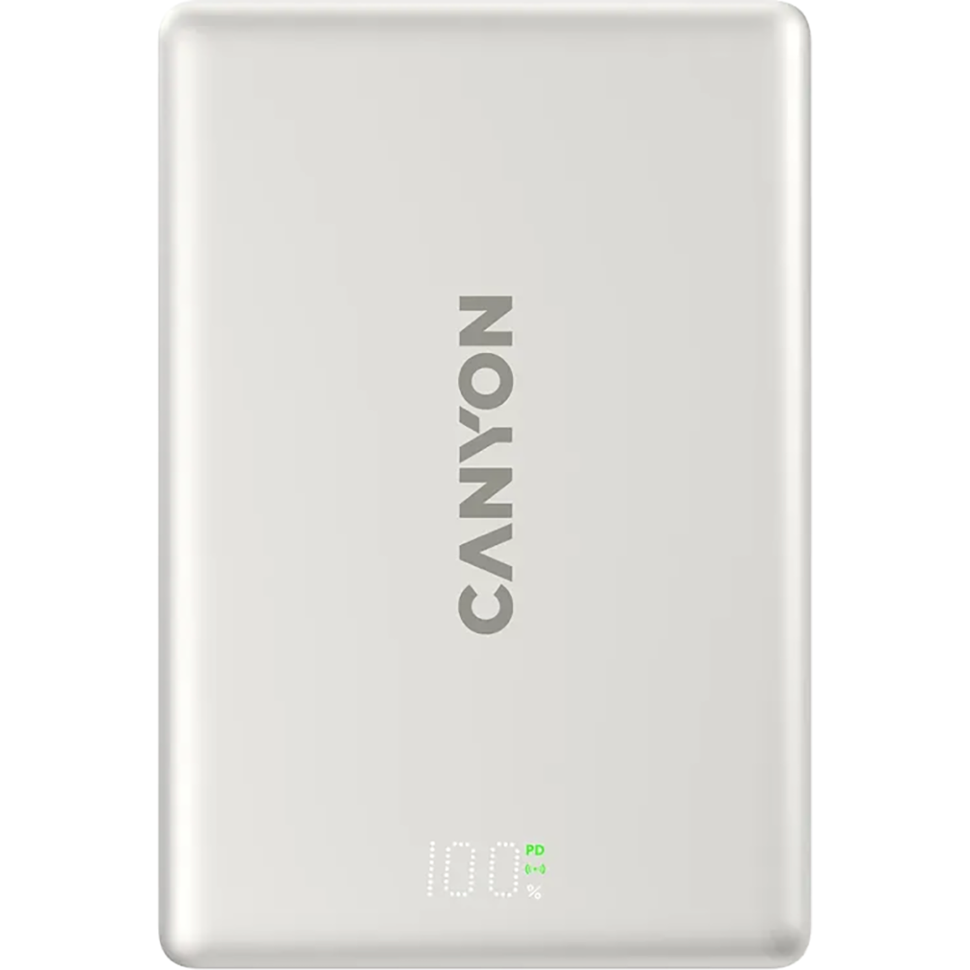 Canyon OnPower 511 on kompaktne magnetiline juhtmevaba akupank, mis on loodud kiireks, usaldusväärseks ja mugavaks igapäevaseks laadimiseks. Võimas 10 000 mAh mahutavus, MagSafe-ühilduv juhtmevaba laadimine ja õhuke, vastupidav disain hoiavad sinu seadmed töös kõikjal. • 10 000 mAh mahutavus kahe Li-Polymer akuelemendiga • Kuni 20 W kiire laadimine USB-C kaudu • Kuni 15 W juhtmevaba laadimine MagSafe magnetkinnitusega • Õhuke 14,5 mm profiil ja kerge konstruktsioon • Vastupidav ABS-, PC- ja alumiiniumsulamist korpus • Professionaalne mitmetasemeline kaitsesüsteem