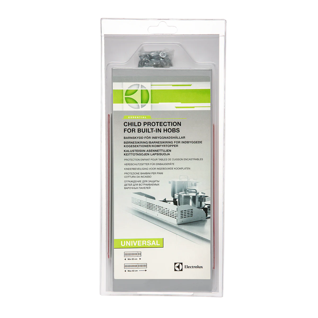 Turvaline köök ka laste jaoks See sisseehitatud pliidiplaadile mõeldud laste turvakaitse hoiab laste uudishimulikud käed kuumadest pottidest ja pannidest eemal, kaitstes neid põletuste eest. Kaitsekate on universaalne ja sobib kõigile sisseehitatud pliidiplaatidele ning on hõlpsasti paigaldatav. Mõõdud: min 50 cm – max 65 cm