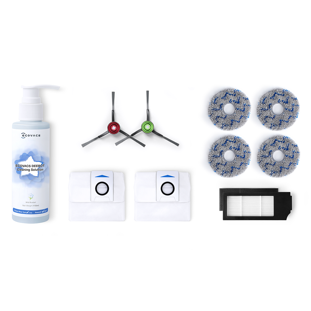 See komplekt sisaldab kõike, mis on vajalik Sinu Deebot X5 tolmuimeja täieliku tõhususe tagamiseks. Pakendis on kaks küljeharja, üks Anti-Tangle põhihari, kolm kõrge jõudlusega antibakteriaalset filtrit ja kolm antibakteriaalset tolmukotti, mis tagavad bakterite ja ebameeldiva lõhnata puhta kodu. Lisaks sisaldab see kahte paari moppimislappe. Komplekt sobib Ecovacs Deebot X5 robottolmuimejaga. • 1 Anti-Tangle põhihari • 2 küljeharja • 3 antibakteriaalset filtrit • 3 antibakteriaalset tolmukotti • 2 paari moppimislappe