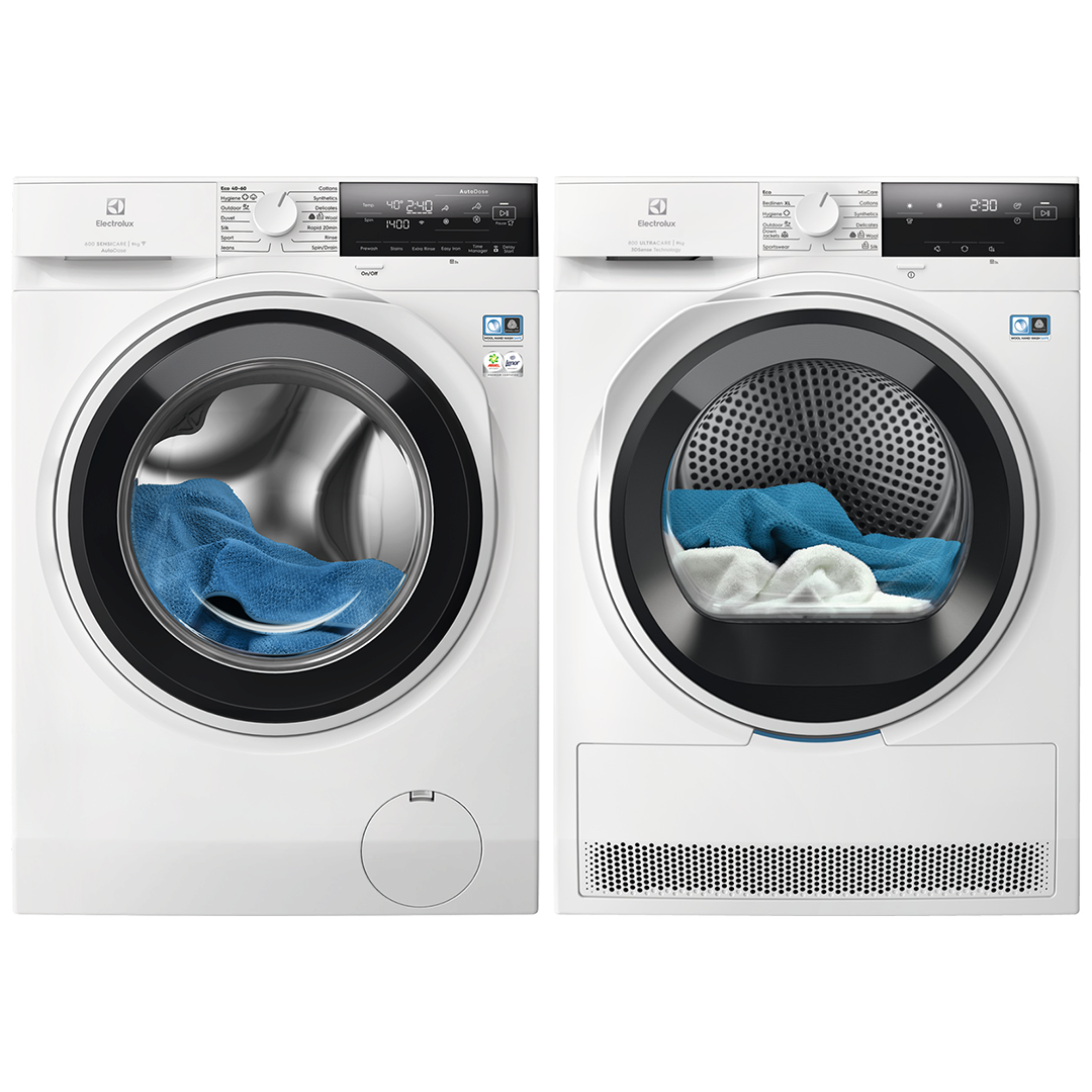 Electrolux 600 SensiCare pesumasin kohandab pesutsüklit automaatselt pesukoguse järgi, säästes aega, vett ja energiat. Nutikad funktsioonid tagavad täpse pesu ja aitavad vältida üledoseerimist. Rakenduse kaudu kaugjuhtimine ja hügieeniprogramm tagavad ideaalselt puhtad riided. 800 UltraCare kuivati on ideaalne valik neile, kes soovivad oma riideid kuivatada täpselt ja hoolikalt. 3DSense tehnoloogia tagab, et isegi paksemad esemed, nagu tekid ja sulejoped, kuivavad ühtlaselt ja säilitavad oma kohevuse ning soojapidavuse. Ideaalne õrnade kangaste, segapesu ja hügieeniliseks kuivatamiseks. • Siidiprogramm spetsiaalselt siidile • Automaatne doseerimine • Ühendus Electroluxi rakendusega • Time Manager® funktsioon • Soojuspumba tehnoloogia • Auruga värskendamise programm • Tagurpidi trumli liikumine hoiab ära kortsude tekkimise