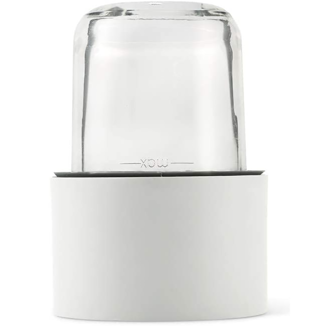 Suurepärane väike tarvik toidu hakkimiseks, jahvatamiseks ja väikeste portsjonite klaaspurkidesse segamiseks. Ideaalne imikutoidu, vürtside, kohvi, marinaadide, kastmete, püreede, ürtide ja pähklite jaoks. Kaasas on kolm klaaspurki mugavaks hoiustamiseks. Väiksema konteineriga saad hakkida palju kiiremini ja peenemaks kui suure veski lisatarvikuga. Lame tera sobib suurepäraselt kohviubade jaoks.