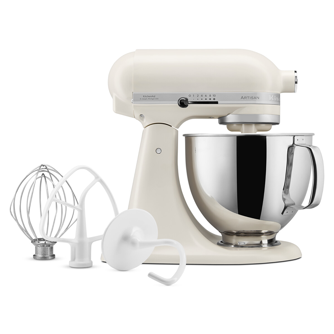 See populaarne Artisan sari toob Sinuni KitchenAidi 100-aastase kogemuse. KithenAidi köögikombainide legendaarne ümar disain, vastupidavus ja mitmekülgsus on neile pälvinud ikoonilise staatuse ja teinud KitchenAidist maailma parima mikseribrändi. Olenemata sellest, kas valmistad küpsiseid, kartulipüreed, hakklihakotlette või leiba, siis see masin ei vea Sind kunagi alt. • Ajatu, elegantne disain, ümarate vormidega • Kerge kasutada ja hooldada • Planetaarne liikumine • Komplektis on 4, 8 L kauss, vispel, klopits ning taignakonks