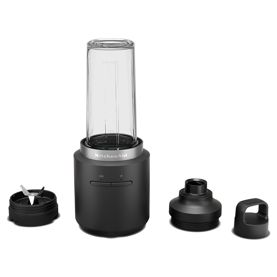 Tutvu KitchenAid Go juhtmevaba blenderiga! Laetav aku ei tööta mitte ainult selle seadmega, vaid seda võib kasutada ka kõigi teiste KitchenAid Go juhtmevaba seeria seadmetega. Unusta tüütud toitejuhtmed ja naudi vabadust. • BPA-vaba segamisanum • Asümmeetrilised roostevabast terasest terad • Reisikaas, et võtta oma maitsvad segud kaasa • Taaslaetav 12V liitiumioonaku, aku täislaadimise aeg 3 tundi • Täislaetud akuga tööaeg kuni 20 minutit • LED-akuindikaator