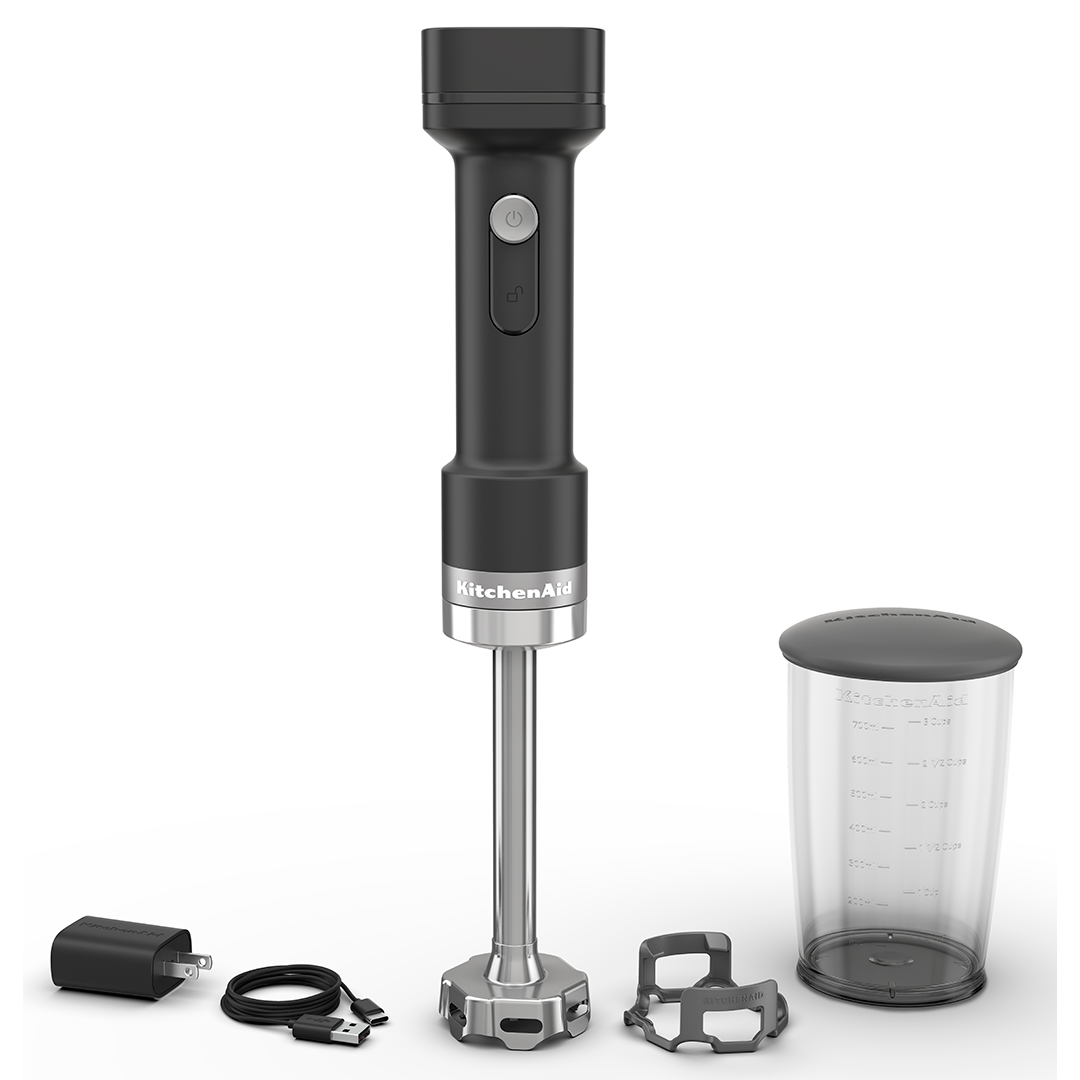 See võimas saumikser on juhtmevaba ja kaasas olevad lisatarvikud aitavad Sul oma igapäevaseid retsepte mitmekesistada. Võimas laetav aku ei tööta mitte ainult selle seadmega, vaid seda võib kasutada ka kõigi teiste KitchenAid Go juhtmevaba seeria seadmetega. • Eemaldatav 17,78 cm segamisvars 4-punktilise roostevabast terasest teraga • Ergonoomiliselt disainitud muudetava kiirusega lüliti • 1 L BPA-vaba segamiskann ja kaas • Patenteeritud eemaldatav anuma kaitseseadis • 590 ml hakkija • Vahustamistarvik • Kiiruste arv - 2 erinevat kiirust (muudetava kiirusega lülitid) • Terade maksimaalne kiirus - 13500 RPM • Taaslaetav 12 V liitiumioonaku, laadimisaeg 3 tundi • Aku tööaeg täislaetuse korral kuni 30 minutit