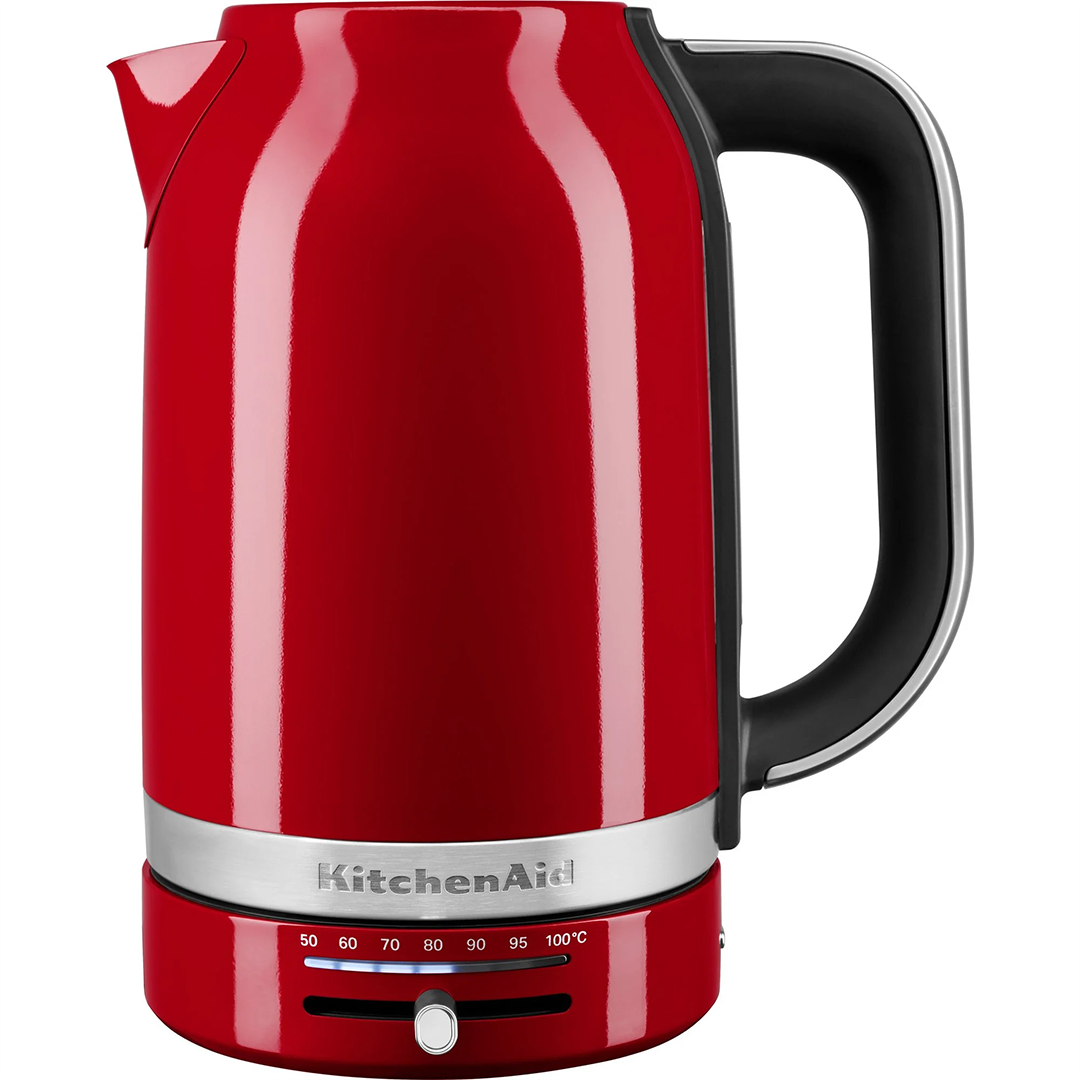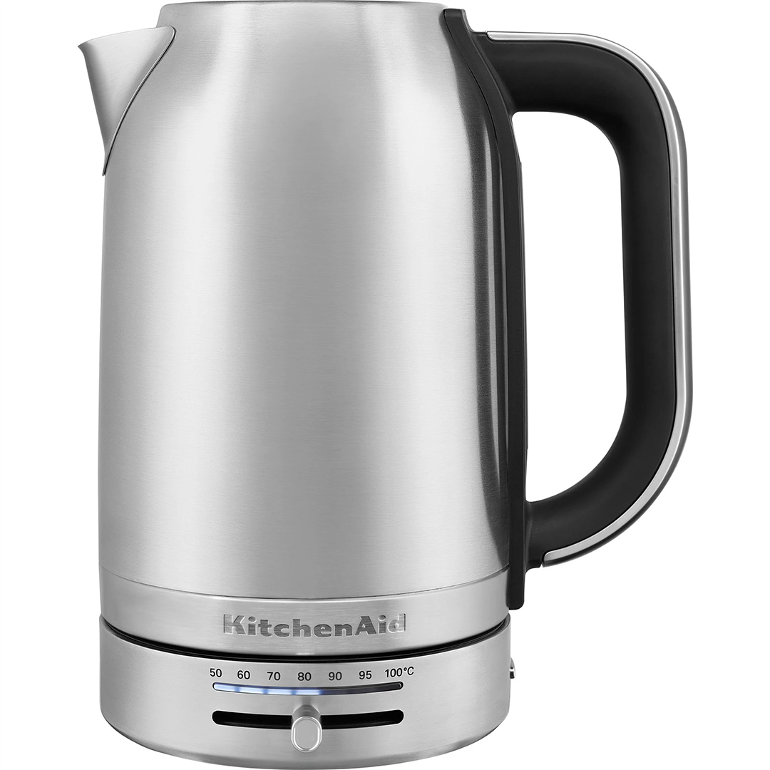 KitchenAidi 1,7 l mahutavusega veekeetja ühendab endas kvaliteedi ja funktsionaalsuse. Tänu temperatuuri reguleerimise võimalusele saab vett soojendada soovitud temperatuurini, muutes selle ideaalseks erinevate jookide ja toitude jaoks. Automaatne kuumutustehnoloogia tagab turvalisuse, lülitades seadme peale vee keetmist välja. Lisamugavust pakuvad eemaldatav katlakivifilter, 360° pöörlev alus ja veetaseme näidik, mis teevad seadme kasutamise ja hooldamise lihtsaks. • Temperatuuri tõus 10 °C kaupa vahemikus 50 kuni 100 °C • Roostevabast terasest konstruktsioon • Eemaldatav katlakivifilter • Juhtmeta töö ja 360° pööramist võimaldav alus • Veetaseme näidik