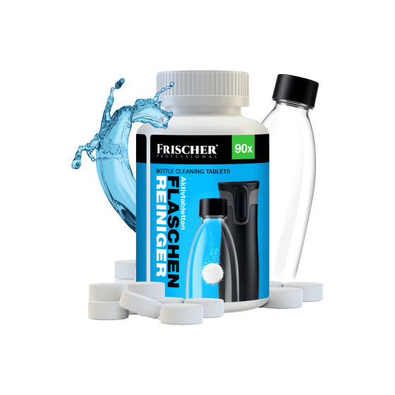 Hoidke oma pudelid laitmatult puhtad nende "Frischer Professional" puhastustablettidega! Need on loodud võitlema kangekaelsete plekkide, lõhnade ja bakteritega, jättes teie pudelid värskeks, hügieeniliseks ja valmis järgmiseks lonksuks—ilma küürimise ja vaevata.PEAMISED OMADUSED:Tõhus puhastusjõud: Lahustab kangekaelsed plekid ja lõhnad, jõudes teie pudeli igasse nurka - põhjalikuks puhastuseks.Ohutu ja keskkonnasõbralik: Mittetoksiline, biolagunev koostis on ohutu roostevabast terasest, klaasist ja BPA-vabast plastikust pudelitele.Kiire ja mugav: Lihtsalt viska sisse, lase kihiseda ja loputa—küürimist pole vaja.Mitmekülgne kasutus: Ideaalne veepudelitele, termosetele, reisikruusidele ja muule.KUIDAS KASUTADA?1. Täitke oma pudel sooja veega.2. Lisage puhastustablett (1 tablett 250 ml vee kohta).3. Laske kihiseda 15–30 minutit.4. Tühjendage pudel, loputage see põhjalikult ja nautige järgmist lonksu!