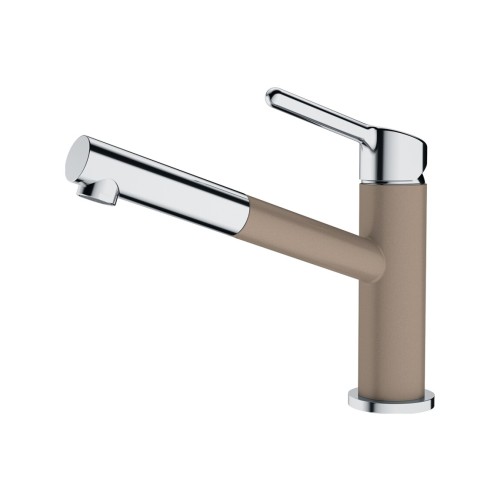 Rohkem  Väljatõmmatava voolikdušiga segisti, dušipea kroomitud plastik, vaikselt liikuv voolik, pöördeulatus 360°, painduvad ühendusvoolikud 400 mm pikad, sobitub sama värvi Tectonite ja Fragranite valamuga.