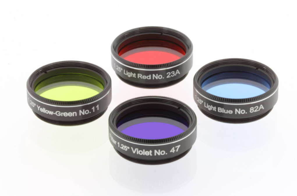 Explore Scientificu 1,25" filtrikomplekt Kuu ja planeetide vaatlemiseks vähemalt 150 mm avaga teleskoopidega parandab kontrasti ja värvitoone, vähendades pimestamist.