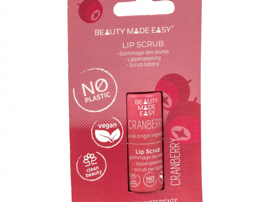 <p>Sisaldab looduslikke koostisosade segu, sealhulgas jõhvikaekstrakti ja suhkrut, mis aitavad õrnalt eemaldada huultelt surnud naharakud ja kuiva naha.</p> <p>Pakend on valmistatud 100% plastivabast paberist, olles täielikult biolagunev ja keskkonnasõbralik.</p> <p>Toode on vegan.</p>