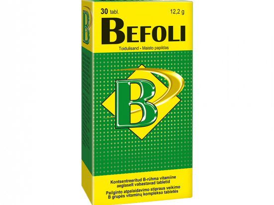 <p>B-vitamiinid osalevad peaaegu kõigis organismi ainevahetusprotsessides. Nad etendavad olulist osa nii süsivesikute, valkude kui rasvade ainevahetuses, kui ka organismi energia tootmises. B-vitamiine on vaja lihaste töös, närvisüsteemi funktsioneerimises ja vererakkude tekkeks.</p> <p>Tiamiin (vitamiin B1) aitab kaasa normaalsele energiavahetusele ja närvisüsteemi talitlusele, aitab kaasa normaalsele südametalitlusele. Riboflaviin (vitamiin B2) aitab hoida normaalset nägemist ja kaitsta rakke oksüdatiivse stressi eest. Niatsiin (vitamiin B3) aitab kaasa normaalsele energiavahetusele ja närvisüsteemi talitlusele, aitab hoida limaskesti ja nahka normaalsetena, aitab vähendada väsimust ja kurnatust. Pantoteenhape (vitamiin B5) aitab kaasa normaalsele vaimsele jõudlusele ja energiavahetusele. Vitamiin B6 aitab kaasa normaalsele homotsüsteiini, valgu- ja glükogeeni ainevahetusele. Vitamiin B12 osaleb rakujagunemise protsessis, aitab kaasa vere punaliblede normaalsele moodustumisele ning immuunsüsteemi talitlusele. Biotiin aitab kaasa makrotoitainete ainevahetusele ja aitab hoida nahka, limaskestasid ning juukseid normaalsena. Folaat (foolhape) osaleb rakujagunemise protsessis, aitab kaasa normaalsele vereloomele ja aminohapete sünteesile. Igapäevane B-vitamiinide saamine on vajalik, kuna veeslahustuvate vitamiinidena neid organismis suurte varudena ei säilitata.</p> <p>Ei sisalda suhkrut ega laktoosi. Gluteenivaba</p> <p>30 tabletti 11,1 g.</p> <p>Tootja: Vitabalans OY, Varastokatu 8, FI-13500, Hämeenlinna. Maaletooja: Vitabalans Pharma OÜ, Hõbekuuse tee 26, 12111 Tallinn.</p>