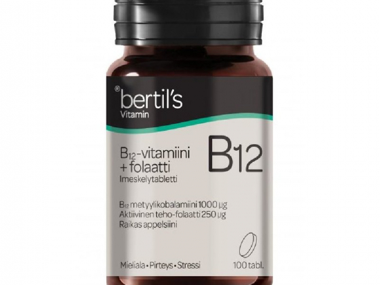 <p>B12 vitamiin aitab kaasa närvisüsteemi normaalsele talitlusele ning aitab kaasa normaalsetele psühholoogilistele funktsioonidele.</p> <p>Netokogus: 50 tabletti, netokogus 16 g.</p>