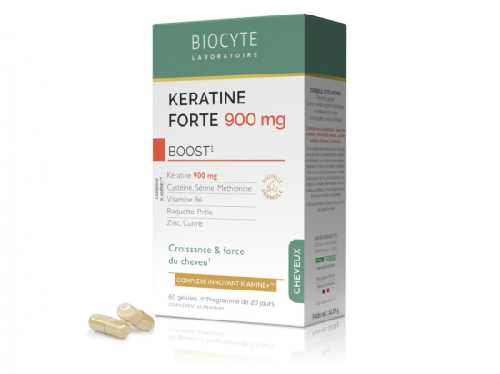 <h2><strong>Biocyte Keratine Forte Boost – juuksehooldus seestpoolt</strong></h2> <p>Elustiil, keskkond ja vanus võivad mõjutada juuste välimust ja elujõudu. Päike, õhusaaste, hormonaalsed muutused, stressirohked perioodid, rasedus või sagedane juuste keemiline töötlemine – kõik need tegurid võivad koormata juukseid ja mõjutada nende normaalset seisundit.</p> <p>Biocyte Keratine Forte Boost kapslid on loodud toetama juuste tervist seestpoolt, pakkudes organismile mitmekesist valikut aminohappeid, mineraalaineid ja vitamiine. Toode sisaldab K-AMINE+™ kompleksi, millesse kuuluvad keratiin, tsüsteiin, seriin, metioniin ning taimsete ekstraktidena rukola ja põldosi. Täiendavalt on lisatud vitamiine B3, B5, B6, B8 ning tsinki ja vaske.</p> <hr /> <h3><strong>Toetavad koostisosad ja nende roll:</strong></h3> <ul> <li> <p><strong>Keratiin</strong> on juustes, nahas ja küüntes leiduv struktuurvalk, mille tootmine organismis võib vanuse, stressi ja toitumise tõttu väheneda.</p> </li> <li> <p><strong>Tsüsteiin, seriin ja metioniin</strong> on olulised aminohapped, mis osalevad valkude moodustumises ja organismi normaalses talitluses.</p> </li> <li> <p><strong>Tsink</strong> aitab hoida juukseid normaalsena ning toetab valkude, sh keratiini, sünteesi.</p> </li> <li> <p><strong>Vitamiin B8 (biotiin)</strong> aitab samuti hoida juukseid normaalsena.</p> </li> <li> <p><strong>Vitamiin B6</strong> aitab kaasa tsüsteiini normaalsele sünteesile.</p> </li> <li> <p><strong>Vitamiin B3 ja B5</strong> toetavad normaalset energiavahetust ja aitavad vähendada väsimust.</p> </li> <li> <p><strong>Vask</strong> aitab kaasa normaalsele juuksevärvuse säilitamisele.</p> </li> <li> <p><strong>Põldosi</strong> on looduslik räni allikas. Räni on oluline struktuurne mineraal, mis aitab säilitada juuste ja küünte normaalset seisundit.</p> </li> <li> <p><strong>Rukola ekstrakt</strong> on antioksüdantiderikas taim, mida traditsiooniliselt on kasutatud naha ja juuste heaolu toetamiseks.</p> </li> </ul> <hr /> <h3><strong>Kellele sobib Biocyte Keratine Forte Boost?</strong></h3> <ul> <li> <p>Neile, kellel on haprad või töödeldud juuksed</p> </li> <li> <p>Neile, kes soovivad toetada juuste struktuuri, tugevust ja elujõudu</p> </li> <li> <p>Neile, kelle juuksed on stressi, hooajaliste muutuste või hormonaalsete kõikumiste tõttu muutunud</p> </li> </ul> <p><strong>Netokogus:</strong> 33g (60 kapslit)</p> <p><strong>Tootja: </strong>Biocyte, 1555 AV de la PLAI, 06250 Mougins, Prantsusmaa.</p> <p><strong>Maaletooja:</strong> UltimateBeauty OÜ, Tartu mnt 84a Tallinn.</p>
