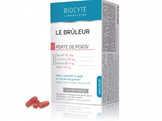 <p>Rohelise tee ekstrakt<br /> Rohelise tee ekstrakt on saadud rohelise tee lehtedest ja sisaldab antioksüdante, mis aitavad kaitsta rakke oksüdatiivse stressi eest. Toode sisaldab päevases annuses 451 mg rohelise tee ekstrakti.</p> <p>L-karnitiin<br /> L-karnitiin on aminohape, mis osaleb rasvhapete transpordis organismis. Toode sisaldab päevases annuses 250 mg L-karnitiini.</p> <p>L-arginiin alfa ketoglutaraat (AAKG)<br /> L-arginiin alfa ketoglutaraat on aminohape, mis toetab valkude ainevahetust ja normaalset verevarustust organismis. Toode sisaldab päevases annuses 100 mg AAKG-d.</p> <p>Vitamiin B5 (pantoteenhape)<br /> Vitamiin B5 aitab kaasa normaalsele energia ainevahetusele ning aitab vähendada väsimust ja kurnatust. Toode sisaldab päevases annuses 6 mg vitamiin B5-t (100% NRV).</p> <p> </p> <p><strong>Netokogus: </strong>40g</p> <p><strong>Tootja:</strong> Biocyte, 1555 AV de la PLAI, 06250 Mougins, Prantsusmaa.</p> <p><strong>Maaletooja: </strong>UltimateBeauty OÜ, Tartu mnt 84a Tallinn.</p>