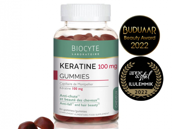 <h2><strong>Biocyte Keratine kummikommid – ilu algab seestpoolt</strong></h2> <p>Tugevad ja terved juuksed saavad alguse keha sisemisest tasakaalust. Toitainete puudus, stress ja hormonaalsed muutused võivad mõjutada juuste seisundit – nende tugevust, tihedust ja väljalangemist.</p> <p>Biocyte Keratine kummikommid on loodud juuste normaalse seisundi toetamiseks seespidiselt. Need ei sisalda üksnes biotiini, vaid ka keratiini hüdrolüsaati, tsinki, seleeni, E-vitamiini ja taimset juusadiantumi ekstrakti.</p> <hr /> <h3><strong>Miks valida Biocyte kummikommid?</strong></h3> <ul> <li> <p><strong>Keratiini hüdrolüsaat</strong> – juustes, nahas ja küüntes leiduv valk, mis aitab säilitada struktuuri ja tugevust.</p> </li> <li> <p><strong>Biotiin, tsink ja seleen</strong> – aitavad hoida juukseid normaalsena.</p> </li> <li> <p><strong>E-vitamiin</strong> – aitab kaitsta rakke oksüdatiivse stressi eest.</p> </li> <li> <p><strong>Juusadiantumi ekstrakt</strong> – traditsiooniliselt kasutatud taim juuksehoolduses.</p> </li> </ul> <p>Imemaitsvad kummikommid on <strong>vegan, gluteenivabad</strong> ning <strong>ei sisalda kunstlikke magustajaid ega lõhnaaineid</strong> – mugav ja nauditav igapäevane tugi sinu juustele.</p> <p><span><span>Netokogus: 162g</span></span></p> <p><span><span>Tootja: Biocyte,1555 AV de la PLAI,06250 Mougins, Prantsusmaa.</span></span></p> <p><span><span>Maaletooja: UltimateBeauty OÜ, Tartu mnt 84a Tallinn.</span></span></p>