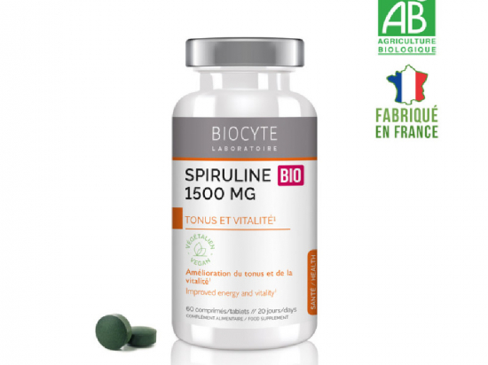 <p><strong>Biocyte Spiruline</strong> sisaldab 100% mahekasvanduses toodetud spirulina pulbrit, mis pressitud tablettidesse lihtsaks tarbimiseks.<br /> Spirulina on sinivetikas, mida on kasutatud toiduna juba sajandeid. See sisaldab ligikaudu 60% valku, sealhulgas kõiki üheksa asendamatut aminohapet, ning fütosotsüaniini – looduslikku pigmenti.<br /> Toode sobib taimetoitlastele ja veganitele.</p> <p><strong>Netokogus:</strong> 30 g<br /> <strong>Koostis:</strong> 100% mahe spirulina pulber<br /> <strong>Tootja:</strong> Biocyte, 1555 AV de la PLAI, 06250 Mougins, Prantsusmaa<br /> <strong>Maaletooja:</strong> UltimateBeauty OÜ, Tartu mnt 84a, Tallinn</p>