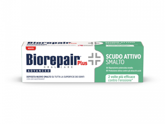 <p>Biorepair PLUS Advanced Active Shield kõrge kontsentratsiooniga microRepair® 200mg/g hambaemailile ladestunud osakesed aitavad parandada ja kaitsta hambapinda erosiooni eest.</p> <p>Hambapasta on rikastatud tsink PCA ja ksülitooliga, et takistada bakterite paljunemist, mis on hambaemaili mineraalide hambakoest kadumise peamiseks põhjustajaks. Spetsiaalsed looduslikud peptiidid soodustavad hambaemaili mineraalide taastamist. Sobib nii täiskasvanutele kui ka lastele (alates 6-aastased), kuna toode ei sisalda fluoriidi.</p> <p>Mitte alla neelata!</p>