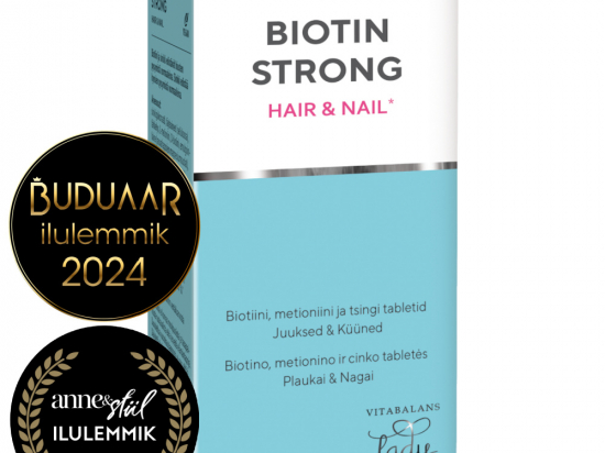 Biotin Strong Hair&Nail tabletid N60 Tootekood: 7004224 GTIN: 6410530051689 Universaalsed tooted nahale, juustele ja küüntele <p>Biotiin Strong Hair&Nail sisaldab juustele ja küüntele vajalikke toitaineid. Toidulisand on kõrge biotiini sisaldusega, lisaks sisaldavad tabletid veel tsinki ja aminohapet metioniini.<br /> Biotiin ja tsink aitavad hoida juukseid ja nahka normaalsena. Tsink aitab hoida küüsi normaalsena.</p> <p>Juuste ja küünte peamine struktuurkomponent on keratiin, mis on väga tugev rohkesti väävlit sisaldav valk. Juuste karvanääpsudes ja küünejuurtes asuvad keratinotsüüdid toodavad keratiini. Keratiin kõvastub kiukimpudeks juuksekarva siseosas, küüne puhul muutub see küüneplaadiks. Küüneplaat koosneb kolmest keratiinikihist, millest pealmine on kõige tugevam. Kihtide vahel on fosfolipiidid, mis muudavad küüne elastseks. Toitainetest mõjutavad juuste ja küünte keratiini kõige rohkem biotiin ning väävlit sisaldavad aminohapped, näiteks metioniin.</p> <p><strong>Netokogus</strong> 13,8 g / 60 tabletti.</p> <p><strong>Tootja: </strong>Vitabalans OY, Varastokatu 8, FI-13500, Hämeenlinna. <strong>Maaletooja: </strong>Vitabalans Pharma OÜ, Hõbekuuse tee 26, 12111 Tallinn.</p> <p><strong>Päritoluriik </strong>Soome</p> | in stock | 10,87 € −7,24 € | Poodi | |