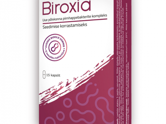 <p>Biroxia on uue põlvkonna probiootikum, mille maohappekindlad kapslid sisaldavad kasulike elujõuliste bakterite segu uudses biokile vormis. Lisaks sellele sisaldavad kapslid C-vitamiini ja prebiootikume – fruktooligosahhariide, mis toitainetena tagavad probiootiliste bakterite kiire kasvu.</p> <p>Tänu patenteeritud tootmisprotsessile kasvavad Biroxias sisalduvad bakterikultuurid juba tootmise ajal selliselt, nagu paikneksid nad soole limaskestal. Tänu sellele on Biroxia kapslites sisalduv probiootiliste bakterite biokile oma struktuurilt ja omadustelt sarnane soolestikus olevale loomulikule kasulike bakterite kooslusele. Biokile vormis olevatel kasulikel bakteritel on võrreldes varasemate põlvkondade probiootikumidega märksa kiirem ja tugevam tervistav mõju.</p> <p>Biroxia maohappekindel kapsel kaitseb selles olevaid häid baktereid happelise pH eest ning tänu sellele jõuab palju suurem hulk elujõulisi baktereid soolestikku.</p> <p>Biroxia kapslid sobivad kasutamiseks ka eriliste toitumisharjumustega inimestele, kaasa arvatud veganitele ja taimetoitlastele.</p> <p>Biokile-probiootikumil eelised võrreldes tavaliste, vanema põlvkonna probiootikumidega:</p> <ul> <li>Parem vastupidavus maohappe ja sapphapete lagundavale toimele.</li> <li>Parem vastupidavus antibiootikumidele.</li> <li>Kõik kapslis olevad kasulikud bakterid jõuavad elujõulistena soolestikku.</li> <li>Bakterid seonduvad paremini soole limaskestaga ja hakkavad seal kiiremini paljunema.</li> <li>Kasulike bakterite kiirem ja tugevam tervistav mõju.</li> <li>Tugevam pärssiv mõju kahjulikele bakteritele.</li> </ul> <p>Biroxia kapsleid soovitatakse võtta:</p> <ul> <li>Seedimise korrastamiseks antibiootikumide kuuri ajal ja pärast seda</li> <li>Infektsioonidest, toidumürgitusest, ravimitest või tasakaalustamata toitumisest põhjustatud seedehäirete korral</li> <li>Seedimise korrastamiseks reisi ajal, pärast harjumatu toidu söömist või suurema koguse alkoholi tarbimist</li> <li>Haigustest paranemise perioodil</li> <li>Soole ärritussündroomi (IBS) korral</li> </ul>