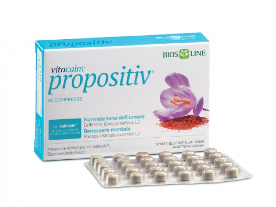 <p>Vitacalm Propositiv on toidulisand Safralyini®, Bacopa ekstrakti ja foolhappega.</p> <p>Sisaldab Safrani mikroniseeritud õietolmu, mis on kasulik normaalse<strong> </strong>meeleolu parandamiseks ja Bacopa ekstrakti, Indias ja troopilistes piirkondades kasvavat taime, mis on kasulik vaimsele heaolule.</p> <p><strong>Netokogus: </strong>12,5g<br /> <strong>Tootja:</strong> Bios Line S.p.A, Viale Finlandia 4, 35020 Ponte San Nicolò - Padova, Itaalia</p>