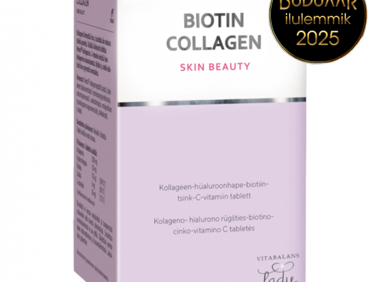 <p>Naha pingsust hoiab naha sidekoes leiduv kiuline tugivalk kollageen. Kollageen moodustab 80% naha kuivmassist. Juba alates 30. eluaastast hakkab naha kollageeni moodustumine vähenema. Selline kollageeni hulga vähenemine jätkub igal aastal 1–2 % võrra.</p> <p>Pärast üleminekuaastaid kiirenevad nahas toimuvad muutused. Kollageeni vähenemine ilmneb näopiirkonnas naha lõtvumise, elastsuse vähenemise ja süvenevate kortsudena. Kollageeni mõju tõhustavad hüaluroonhape, vitamiinid ja tsink.</p> <p>Biotiin Collagen Skin Beauty sisaldab Verisol®-kollageeni peptiide ( I tüüpi kollageen), mis on lõhustatud sigadelt pärinevast kollageenist. Kollageeni peptiidid imenduvad paremini kui kollageen.</p> <p>Hüaluroonhape seob nahas vett ja parandab sellega naha niiskussisaldust. Biotiin ja tsink aitavad hoida nahka normaalses seisukorras ning C-vitamiin aitab kaasa naha kollageeni moodustumisele.</p> <p><strong>Netokogus: </strong>132g / 120 tabletti.</p> <p><span><span><span><strong>Tootja: </strong>Vitabalans OY, Varastokatu 8, FI-13500, Hämeenlinna, Soome.<br /> <strong>Maaletooja: </strong>Vitabalans Pharma OÜ, Hõbekuuse tee 26, 12111 Tallinn.</span></span></span></p>