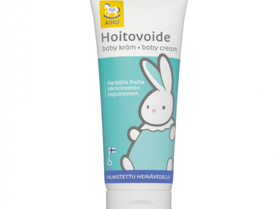 <p>Hõlpsasti pealekantav ja kiiresti imenduv Ainu kreem sobib imiku tundliku naha hooldamiseks. Kaitsva toimega kreem niisutab nahka ja tekitab sellele kaitsva kihi. Toode sisaldab 5% dekspantenooli, mis leevendab ka mähkmelöövet. Hooldav kreem aitab nahaärritust ka ennetada.<br /> <br /> Toote omadused: niisutab tõhusalt nahka, kerge ja kiiresti imenduv, lõhnaaineteta, VEGAN</p>