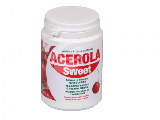 <p>Acerola-kirsi ekstrakt sisaldab looduslikku C-vitamiini, mis on tugev antioksüdant. Acerola-kirsi tabletid on hea maitsega ja sobivad tervele perele. </p> <p>Vitamiin C aitab kaasa närvisüsteemi ning immuunsüsteemi normaalsele talitlusele, aitab kaasa rakke oksüdatiivse stressi eest, aitab vähendada väsimust ja kurnatust.</p> <p>Vitamiin C vaeguse profülaktikaks</p>