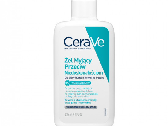 <p>Eemaldab tõhusalt ebapuhtused ja surnud naharakud, aidates samal ajal vähendada iluvigu ning reguleerida liigset rasu ilma naha loomulikku kaitsekihti kahjustamata. Toode ahendab laienenud poore ja vähendab komedoonide teket, jättes naha puhtaks, värskeks ja mati.</p> <p>Pesugeel sisaldab:</p> <ul> <li>2% salitsüülhapet, mis aitab poorid sügavuti puhastada ja eemaldada surnud naharakke,</li> <li>valget savi liigse rasu imamiseks ning matistamiseks, ning</li> <li>nahka rahustavat niatsiinamiidi.</li> </ul> <p>Lisaks toetavad naha kaitsebarjääri taastamist kolm olulist keramiidi, mis aitavad säilitada naha loomuliku tasakaalu ja kaitset.</p> <p>Toode on mittekomedogeenne, parfüümivaba ning dermatoloogiliselt testitud, sobides hästi rasusele ja aknekalduvusega nahale, kes vajab õrnatoimelist, ent tõhusat nahahooldust.</p>