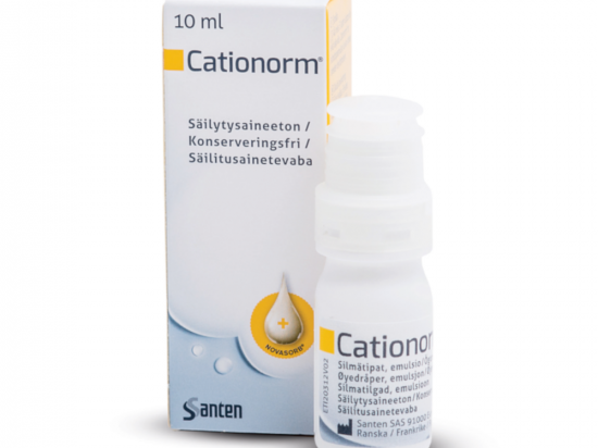 <p>Toimides kõigile kolmele pisarakile kihile on tulemuseks pikaajaline ja tõhus toime.</p> <p>Cationorm on steriilne hüpotooniline säilitusaineteta piimja vedeliku taoline emulsioon, mis on sarnane loomulikule pisarale. Kandub kiiresti ja ühtlaselt silmapinnale ning tagab hea niisutuse ja mugavustunde silmades.</p> <p>Silmatilgad on säilitusainevabad ning sobivad kasutamiseks kõikide kontaktläätsedega.</p> <p>Soovitatakse kuiva silma sümptomite leevendamiseks, näiteks sügeleva, torkiva või põletava tunde korral silmas, samuti võõrkeha (liiva või tolmu) tunde korral.</p> <p><strong>Säilitamine: </strong>Hoida temperatuuril kuni 25 °C. Mitte lasta külmuda. Hoida eemal kuumusest, niiskusest, otsesest päikesevalgusest. Hoida laste eest varjatud ja kättesaamatus kohas. </p> <p><strong>Pakend: </strong>Pudel 10 ml</p> <p><strong>Tootja:</strong> SANTEN SAS, Prantsusmaa<br /> <strong>Maaletooja:</strong> Santen OY Eesti Filiaal<br /> </p>
