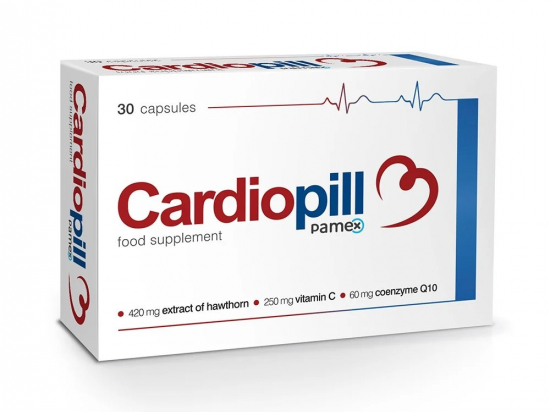 <p><strong>Cardiopill </strong>sisaldab viirpuuviljade Crataegus monogyna ja Crataegus laevigata kuivekstrakti. Crataegus laevigata toetab südame tegevust, suurendab hapniku liikumist ja perifeerset vereringet. Crataegus monogyna toetab vereringet. </p> <p>Vitamiin C aitab kaasa kollageeni normaalsele moodustumisele veresoonte normaalseks talitluseks ja aitab kaitsta rakke oksüdatiivse stressi eest. </p> <p>Koensüüm Q10 leidub pea kõikide taimede, loomade ja inimeste rakkudes. Vanusega selle kontsentratsioon rakkudes väheneb, seetõttu võib tekkida vajadus täiendavaks tarbimiseks.</p> <p><strong>Netokogus: </strong>26 g (30 kapslit).</p> <p><strong>Tootja: </strong>Pamex Pharmaceuticals GmbH, In der Stelzbach 1, 65618 Selters, Saksamaa.</p> <p><strong>Turustaja Eestis: </strong>Sirowa Tallinn AS, Salve 2c, 11612 Tallinn. </p>