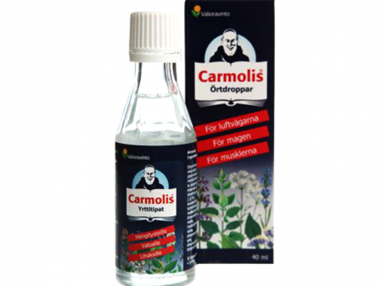 <p>Tilgad taimede eeterlike õlidega aastast 1610.</p> <p>Mõned aastasajad tagasi põhines arstiteadus pärimustel. Teadmisi koguti ja arendati kloostrites, mis olid teaduse ja vaimuelu keskusteks. Sellest ajast pärinebki Karmeliitide Vennaskonna munkade poolt valmistatud preparaat Carmolis, mille saladuses hoitud retsept on vanade traditsioonide pärandina meieni jõudnud.</p> <p>Eeterlikud õlid on taimede õlirakkudesse kogunenud, sageli tugevasti lõhnavad ja mitmekülgse toimega ained. Nt. nelk, kaneel, aniis, muskaat ja tüümian aitavad toetada seedimist. Sidrun ja salvei leevendavad kurgu ärritust ning mõjuvad rahustavalt kõrile, neelule ja häälepaeltele. Mentool soodustab nina kaudu hingamist.</p> <p><strong>Netokogus: </strong>40ml</p> <p><strong>Tootja:</strong> Dr. A. & L. Schmidgall GmbH & Co KG, A-1121 Viin, Austria</p> <p><strong>Turustaja Eestis: </strong>AS Sirowa Tallinn, Salve 2c, Tallinn 11 612; Tel. 6 830 700</p>