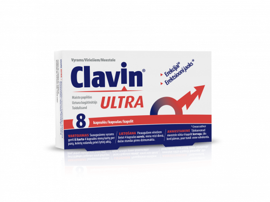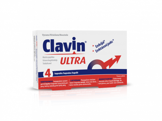 Clavin Ultra N8 Tootekood: 7000548 GTIN: 4779028551127 Toidulisandid potentsile <p>Harilik kuradisarv (Tribulus terrestris) – soodustab seksuaaliha ja –võimekust.</p> <p>Safrankrookus (Crocus sativus) – stimuleerib libiidot ja parandab erektsiooni, aitab suurendada sperma mahtu ja lõõgastab lihaseid.</p> <p>Seleen – aitab kaasa normaalsele spermatogeneesile.</p> <p>Tsink – aitab kaasa normaalsele viljakusele ja reproduktsioonile.</p> <p>Clavin® ULTRA on unikaalse koostisega toidulisand. Mugulkress (Lepidium meyenii) aitab säilitada loomulikku seksuaalset aktiivsust ja seksuaalenergiat.</p> <p>Clavin® ULTRA’s sisalduvad hariliku kuradisarve (Tribulus terrestris) ekstrakt ja safrankrookuse ekstrakt (Crocus sativus) on toodetud spetsiaalsete galeeniliste meetoditega. Toidulisandi koostis on rikastatud ULTRA ACTIVE™ kõrgkvaliteetsete ekstraktide seguga.</p> <p>Kes võivad Clavin® ULTRA’t kasutada? Kõik täiskasvanud mehed sõltumata vanusest.</p> <p>Clavin® ULTRA toime kiirus? Seksuaalse stimulatsiooni tingimustes on toime väga kiire (safrankrookus stimuleerib libiidot ja parandab erektsiooni).</p> <p>ULTRA ACTIVE™ sisaldab unikaalset kõrgkvaliteetsete ekstraktide (harilik kuradisarv ja safrankrookus) segu, mille eesmärk on tagada maksimaalne biosaadavus.</p> <p>Clavin Ultra 4 kapslis (päevane annus) sisaldab: Hariliku kuradisarve ekstrakt 200mg; hariliku eleuterokoki ekstrakt 40mg; mugulkressi ekstrakt 30mg; safrankrookuse ekstrakt 30mg; L-arginiinmonohüdrokloriid 1800mg; L-tsitruliin 64mg; Tsink 3,2mg; seleen 24µg.</p> <p><strong>Netokogus</strong> 5,0g;</p> <p><strong>Tootja:</strong> Simply You Pharmaceuticals (Tsehhi Vabariik), Esindus : SanoSwiss UAB (Leedu).</p> | in stock | 30,36 € | Poodi | |