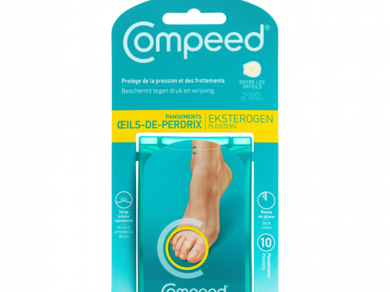 Compeed konnasilmaplaaster varvaste vahele N10 Tootekood: 7003072 GTIN: 5708932019385 Tooted konnasilmadele ja soolatüügastele <ul> <li>Kiirendab konnasilma eemaldumist.</li> <li>Vähendab survet ja hõõrdumist.</li> <li>Leevendab valu hetkega.</li> <li>Püsib hästi paigal.</li> </ul> <p>COMPEED hüdrokolloid-tehnoloogia kujutab endast aktiivgeeli, mis sisaldab niisutavaid osakesi. COMPEED plaaster toimib justkui teise nahana, et toetada loomulikku niiskuse tasakaalu. See vähendab hõõrdumist ning survet, leevendab valu hetkega, niisutab ja pehmendab konnasilma, aidates kaasa selle eemaldumisele.<br /> Püsib paigal üle 24 tunni, kuid see võib indiviiditi erineda.</p> | in stock | 7,34 € | Poodi | |