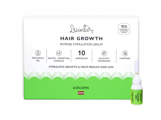Dzintars Dizciems juuksekasvu intensiivselt stimuleeriv seerum 10x5ml Tootekood: 475103790186 GTIN: 4751037901865 Juuste väljalangemise vastu <p>Dzintars Dizciems juuksekasvu intensiivselt stimuleeriv seerum glükosüülhesperidiini ja kampriga soodustab peanaha mikrotsirkulatsiooni ja parandab folliikulite seisundit, stimuleerides juuste kasvu ja vähendades juuste väljalangemist.</p> <p>Koostisesse kuuluv biotiini-tripeptiidi kompleks ja takjaekstrakt aitavad tugevdada juuksefolliikulis olevaid juuksejuuri. Sibulaekstrakt ja patšuliõli toidavad juukseid ja parandavad nende struktuuri.</p> <p>Seerum on pakendatud spetsiaalselt selleks disainitud ampullidesse, et doseerida iga kasutuskorra jaoks täpne kogus toodet.</p> <p>Pakend sisaldab 10 ampulli, mis on soovitatav minimaalne arv kasutamist. Toode võimendab juuksekasvu stimuleeriva šampooni Dizciems toimet.</p> <p><strong>Tootja:</strong> H.A. Brieger, Mālu 30, Rīga, LV-1058, Latvia</p> <p><strong>Päritoluriik: </strong>Läti</p> | in stock | 14,87 € | Poodi | |