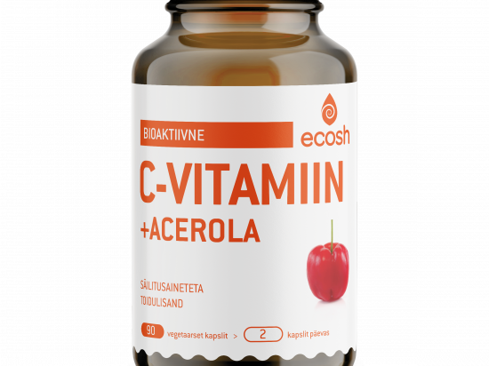 Ecosh bioaktiivne Vitamiin C Acerolaga N90 Tootekood: 7008861 GTIN: 4741609542107 Vitamiin C <p><strong>Bioaktiivsed C-vitamiinid</strong> koos tumepunase hapukirsi Acerolaga imenduvad organismi mitmeid kordi paremini kui tavalised askorbiinhappe vormid. Ecoshi tootes sisalduvad bioaktiivsed vormid toimetavad kehas pehmelt, ei ärrita magu ega muid siseorganeid, erinevalt happe vormis olevatest C-vitamiinidest.</p> <p>Acerola kirss sisaldab lisaks vitamiine A, B1, B2, B3, kaltsiumit, magneesiumit, karotenoide ja bioflavonoide. Ka C-vitamiini askorbaadi vormid sisaldavad endas väärtuslikke mineraale nagu kaltsium ja magneesium. Vitamiinid ja mineraalid aitavad üksteisel paremini ainevahetusse imenduda ja võimendavad üksteise toimet. Acerola kirss on kõrge antioksüdantide sisaldusega ning temas leidub rohkem C-vitamiini kui tsitruselistes, mustsõstras, kibuvitsas ja astelpajus. Näiteks sisaldab 100g acerolat ligikaudu 1678 mg C-vitamiini, sidrun aga 57 mg.</p> <p>C-vitamiini on vaja organismi vastupanuvõime tõstmiseks, väsimuse ning stressi peletamiseks. C-vitamiin aitab kaasa normaalsetele psühholoogilistele funktsioonidele, närvisüsteemi normaalsele talitlusele ning suurendab raua imendumist. Lisaks aitab vitamiin C kaasa kollageeni normaalsele moodustumisele luude, kõhrkoe, veresoonte, kapillaaride, hammaste, igemete ja naha normaalseks talitluseks.</p> <p><strong>Ecoshi bioaktiivne C-vitamiin:</strong></p> <ul> <li>loob hea enesetunde,</li> <li>annab energiat.</li> </ul> <p><strong>Bioaktiivse C-vitamiini eelised: </strong></p> <ul> <li>sisaldab suurel ja vajalikul määral<strong> bioaktiivset</strong> c-vitamiini,</li> <li>puudub happelisus ja on kerge maole,</li> <li>kõrge biosaadavus,</li> <li>sisaldab Acerola kirsi puuviljapulbrit koos teiste väärtuslike vitamiinide ja mineraalidega,</li> <li>pikemaajalisem C-vitamiini hoiustamine organismis tänu L-askorbüül-6- palmitaadile.</li> </ul> <p><strong>Netokogus: </strong>90 taimset kapslit, netokaal 50g</p> <p><strong>Tootja:</strong> Ecosh Life OÜ, Kukermiidi 4, 11216 Tallinn, Harjumaa, Eesti</p> | in stock | 13,44 € | Poodi | |