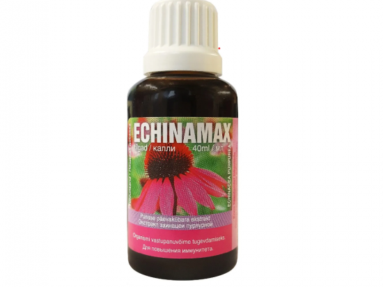Echinamax punase päevakübara ekstrakt 40 ml Tootekood: 474150500312 GTIN: 4741505003122 Muud tooted organismi tugevdamiseks <p>Herpese või külmavilli kahtluse puhul koheselt tupsutada Echinamaxi mitu korda päevas kahtlusaluse piirkonna peale huultel. Toode on valmistatud Soomes mahepõllumajanduslikult kasvatatud punase päevakübara (Echinacea purpurea) ekstraktidest.</p> <p><strong>Netokogus:</strong> 40ml</p> <p><strong>Tootja: </strong>Hankintatukku Oy, Soome<br /> <strong>Esindaja:</strong> Loodustoode OÜ</p> | in stock | 6,53 € | Poodi | |
