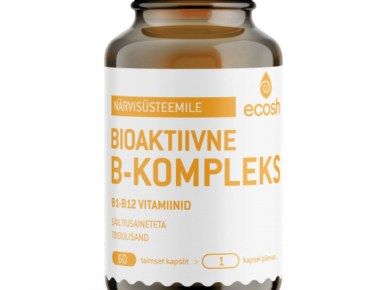 Ecosh bioaktiivne B-kompleks kapslid N60 Tootekood: 7014946 GTIN: 4741609542671 Vitamiin B <p><strong>Mida tähendab bioaktiivne?</strong> Bioaktiivne aine on koheselt valmis minema biokeemiliste muundumiste ehk ainevahetuse võrgustikku, mis on organismide elu aluseks. Mitteaktiivsed vitamiinid tuleb rakus esmalt muuta aktiivseks, kuid bioaktiivne vitamiin on koensüümses vormis ja ei nõua enam rakus lisa reaktsioone.</p> <p><strong>B-vitamiinidel on organismis täita hulganisti väga erinevaid ja olulisi funktsioone:</strong></p> <ul> <li>Tiamiin (vitamiin B1) aitab kaasa normaalsele südame talitlusele. </li> <li>Riboflaviin (vitamiin B2) aitab hoida normaalset nägemist ja kaitsta rakke oksüdatiivse stressi eest. </li> <li>Niatsiin (vitamiin B3) aitab kaasa normaalsele energiavahetusele ning vähendada väsimust ja kurnatust.</li> <li>Pantoteenhape (B5) aitab kaasa steroidhormoonide, vitamiin D ja teatavate neurotransmitterite normaalsele sünteesile ja ainevahetusele.</li> <li>Vitamiin B6 aitab kaasa normaalsetele psühholoogilistele funktsioonidele, immuunsüsteemi talitlusele ning vähendada väsimust ja kurnatust.</li> <li>Biotiin (vitamiin B7) aitab hoida juukseid, nahka ja limaskesti normaalsena.</li> <li>Folaat (vitamiin B9) osaleb rakujagunemise protsessis, aitab kaasa normaalsele aminohapete sünteesile ja vereloomele.</li> </ul> <p><strong>Netokogus: </strong>29 g, purgis 60 kapslit.</p> <p><strong>Tootja: </strong>Ecosh Life OÜ, Kukermiidi 4, 11216 Tallinn, Eesti</p> | out of stock | 14,96 € | Poodi | |