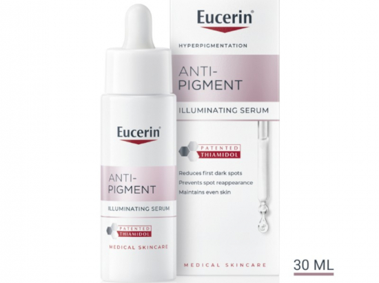 <p>Eucerin Anti-Pigment kahetoimeline seerum - tõhus lahendus hüperpigmentatsiooni vastu.</p> <p>Koosneb kahest spetsiifiliselt välja töötatud toimeainest, mis töötavad sünergiliselt hüperpigmentatsiooni vähendamiseks ja naha toonuse ühtlustamiseks:</p> <ul> <li> <p><strong>Tiamidool</strong> – see patenteeritud ja tõhus toimeaine sihib otseselt hüperpigmentatsiooni algpõhjust. Kliinilised uuringud on näidanud, et tiamidool vähendab märkimisväärselt tumedate laikude teket ja aitab ennetada nende kordumist regulaarse kasutamise korral.</p> </li> <li> <p><strong>Kontsentreeritud hüaluroonhape</strong> – üks naha parimaid niisutajaid, mis aitab nahal siduda ja säilitada niiskust, toetades naha tervislikku ja säravat välimust.</p> </li> </ul> <p>Tõhus ja hästi talutav kõigile nahatüüpidele, sealhulgas tundlikule nahale. See sobib kasutamiseks ka igapäevases nahahooldusrutiinis.</p>