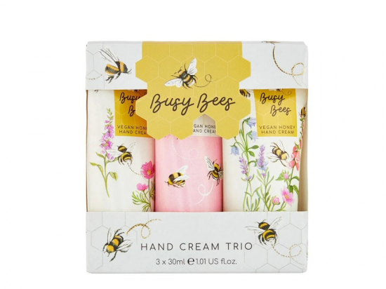 <p>Kätekreem sisaldab pehmendavat sheavõid, antioksüdantiderikast manuka lehtede ekstrakti ja niisutavat mesilaspalsami õieekstrakti. Rikkalik kakaoseemnevõi ja antioksüdantiderikas E-vitamiin pakuvad kätele erilist hooldust.</p> <p>Huulepalsam sisaldab pehmendavat sheavõid ning porgandiseemneõli ja E-vitamiini.</p> <p>Iga "Busy Bees" müüdud toode toetab uhkusega Bumblebee Conservation Trusti, mis on Ühendkuningriigis ainus heategevusorganisatsioon, mis on pühendunud mesilaste kaitsele. Iga müüdud toote eest annetatakse 5p. </p>