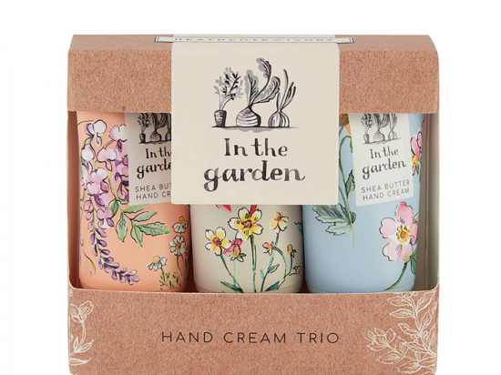 <p>Kätekreem sisaldab sheavõid, E-vitamiini, laimi ja teepuu eeterlikke õlisid ning muraka, rabarberi ja leedriõie ekstrakte. Värske aroom, mis on inspireeritud Briti aedadest, rabarberi ja sireliõite, roheliste lehtede ja valgete rooside nootidega. Kerged puuvillased kindad aitavad aiatöödel hoida käsi puhtana.</p>
