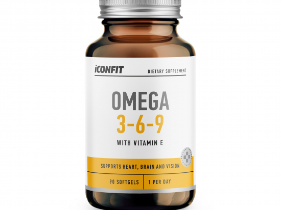 ICONFIT Omega 3, 6 & 9 990mg softgels N90 Tootekood: 474413001363 GTIN: 4744130013634 Kalaõli ja oomega-3 <p>Kapslis sisalduvad rasvhapped DHA ja EPA toetavad südametegevust, ajutalitlust ja nägemist. Omega 3-6-9 sisaldab õlide segu - kalaõli, linaseemneõli, päevalilleseemneõli.<br /> <br /> E vitamiin aitab kaitsta rakke oksüdatiivse stressi eest.<br /> <br /> DHA ja EPA kasulik toime avaldub vähemalt 250 mg tarbimisel. </p> <p><strong>Netokogus: </strong>123,3g</p> <p><strong>Tootja: </strong>European Foods OÜ, Härgmäe 22, Tallinn, 13525, Harjumaa, Estonia</p> | in stock | 8,60 € +1,23 € | Poodi | |