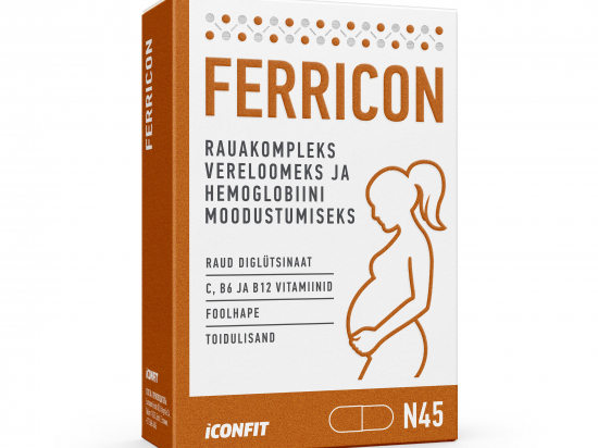 ICONFIT Ferricon - rauakompleks rasedatele N45 Tootekood: 474413001465 GTIN: 4744130014655 Raud <p style="text-align:justify"><span><span><span><strong><span><span style="background-color:white"><span><span><span style="color:#222222">ICONFIT FERRICON</span></span></span></span></span></strong><span><span style="background-color:white"><span><span><span style="color:#222222"> on rauakompleks vereloomeks ja hemoblogiini moodustumiseks. Toode on mõeldud kasutamiseks eelkõige raseduse ajal, mil võib sagedamini rauapuudust esineda. Toode sisaldab kõhusõbralikku raud diglütsinaati ning C vitamiini, mis ei põhjusta seedeprobleeme ega ebameeldivat tunnet. Lisaks on tootes C, B6 ja B12 vitamiine ning foolhapet. </span></span></span></span></span></span></span></span></p> <p style="text-align:justify"><strong>Netokogus: </strong>45 kapslit </p> <p><strong>Tootja: </strong>European Foods OÜ, Härgmäe 22, Tallinn, 13525, Harjumaa, Estonia</p> | in stock | 8,14 € +1,63 € | Poodi | |