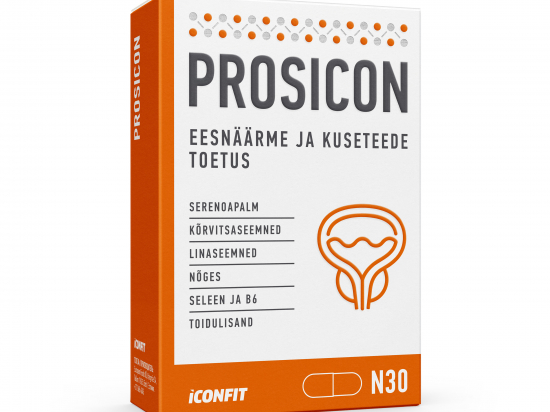 ICONFIT Prosicon - eesnäärme kompleks N30 Tootekood: 474413001505 GTIN: 4744130015058 Toidulisandid eesnäärmele <p>Iconfit Prosiconi eesmärk on toetada meeste tervist, säilitada normaalset eesnäärme funktsiooni ja kuseteede tervist. </p> <p>Kõrvenõgese lehed aitavad säilitada eesnäärme tervist ja toetavad uriini eritumist.<br /> Kõrvitsaseemne ekstrakt on rikas kasulike toitainete poolest, mis toetavad kuseteede talitlust.<br /> Linaseemneekstrakt – linaseemnetes ja nende metaboliitides leiduvad lignaanid võivad toetada meeste eesnäärme tervist.</p> <p><strong>Netokogus: </strong>60 kapslit, netokaal 33g</p> <p><strong>Tootja:</strong> European Foods OÜ, Härgmäe 22, Tallinn, 13525, Harjumaa, Estonia</p> | in stock | 8,03 € +1,60 € | Poodi | |