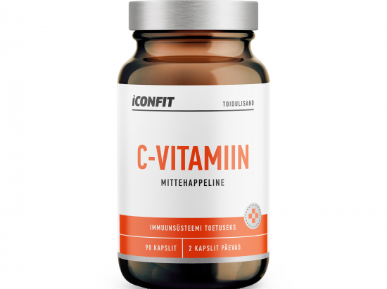 ICONFIT C vitamiin (mittehappeline) 800mg N90 Tootekood: 474413001449 GTIN: 4744130014495 Vitamiin C <ul> <li>C-vitamiin aitab vähendada väsimust ja kurnatust.</li> <li>Toetab immuunsüsteemi ja organismi elutähtsaid funktsioone.</li> <li>Aitab kaasa normaalsele energiavahetusele ning paneb sind ennast hästi ja tervena tundma.</li> <li>C-vitamiin aitab kaasa kollageeni normaalsele moodustumisele luude, veresoonte, kõhrede, naha, igemete ja hammaste normaalseks toimimiseks.</li> </ul> <p>Tootja: European Foods OÜ</p> | out of stock | 6,41 € +1,28 € | Poodi | |