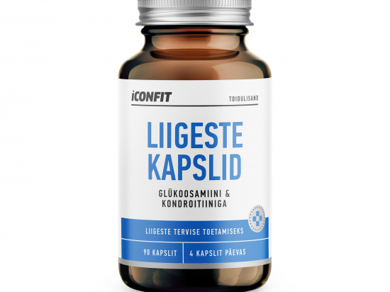 ICONFIT Liigeste kapslid N90 90 Tootekood: 474413001341 GTIN: 4744130013412 Lihastele, liigestele ja luudele <p><strong>ICONFIT LIIGESTE KAPSLID</strong> on kompleksne toode, mis on välja töötatud liigeste, luude, sidekoe ja kõhre tervise toetamiseks. See sisaldab kokku 9 tõhusat koostisosa ja on mõeldud inimestele, keda vaevavad liigeseprobleemid või kõigile, kes vajavad oma liigeste jaoks lisatoetust. Toodetud kasutades ainult kõrgeima kvaliteediga koostisosi.</p> <ul> <li><strong>Sisaldab glükoosamiini ja kondroitiini</strong>, millest moodustuvad kõõlused, kõhred ja liigesevedelik.</li> <li>India viirukipuu <em>(Boswellia serrata</em>) ekstrakt toetab liigeste tervist, painduvust ja elastsust.</li> <li><strong>Tsink</strong> ja <strong>mangaan</strong> aitavad hoida luid normaalsena. Mangaan aitab kaasa ka sidekoe normaalsele moodustumisele.</li> <li><strong>C-vitamiin</strong> aitab kaasa kollageeni normaalsele moodustumisele luude ja kõhrkoe normaalseks talitluseks.</li> <li><strong>Hüaluroonhape</strong> toimib liigeste määrdeainena ja kaitsepehmendusena. </li> <li><strong>MSM</strong> on orgaaniline väävelühend, mis on tuntud koostisosa liigeste toetamiseks. </li> <li><strong>Üks purk sisaldab 90 kapslit. </strong></li> </ul> <p><strong>Netokogus: </strong>45g</p> <p><strong>Tootja:</strong> European Foods OÜ, Härgmäe 24, Tallinn, 11625, Harjumaa, Estonia</p> | in stock | 11,76 € +1,68 € | Poodi | |