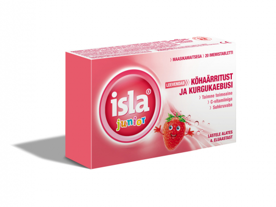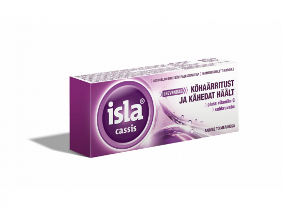 <p>Taimsed imemistabletid. Isla-Mint-i koostisosad katavad palsamina ärritunud kurgu limaskesta, andes kaitse edasiste kahjustuste eest ja soodustades kiiret paranemist.</p> <p>Isla-Mint sobib eriti hästi järgmiste kurguprobleemide puhul: köhaärritus ja hääle kähedus, suur koormus häälepaeltele (lauljad, kõnepidajad), kuiv õhk (kütteperioodist või konditsioneerist tingitud), suukuivus, ninahingamise takistus.<br /> <br /> Isla-Mint-is sisalduvad islandi käokõrvast pärit limaained, mis katavad palsamina kurgu limaskesta. Tänu sellele on kurgu limaskest kaitstud kuiva ja saastunud õhu eest, ta terveneb kiiremini kahjustustest ja tema normaalne kaitsevõime taastub.<br /> Isla-Mint-i saab kasutada ka profülaktika eesmärgil tundlike häälepaelte kaitsmiseks.<br /> <br /> Ka kehaline treening koormab limaskesti normaalsest enam. Tulemuseks võib olla kuivanud ja tüütult kriipiv kurk. Sellistel juhtudel pakub Isla-Mint limaskestadele loomulikku kaitset. Imemistabletid sobivad seetõttu hästi treeningu ajal kasutamiseks, takistades suu ja limaskesta kuivuse teket.<br /> <br /> Isla-Mint-il on meeldiv piparmündi maitse ja suhkruvaba koostis. Seetõttu on imemistabletid hambasõbralikud ja sobivad eriti hästi lastele ja puberteedieas noortele.</p> <p><strong>Seadme ja pakendi sisu</strong><br /> Pakend sisaldab 30 imemistabletti ja infolehte.<br /> <br /> <strong>Tootja või tootja volitatud esindaja</strong><br /> Tootja: Engelhard Arzneimittel GmbH & Co. KG, Herzbergstr. 3, 61138 Niederdorfelden, Saksamaa.<br /> Turustaja Eestis: Swixx Biopharma OÜ, Pärnu mnt 139e/2, Tallinn, tel.nr 640 1030<br /> <br /> <strong>Päritoluriik</strong><br /> Saksamaa</p>